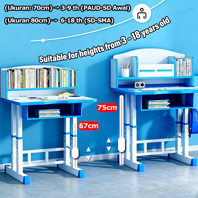 [Garansi 10 tahun]Meja Belajar Anak Set Kursi Tinggi Dapat Diatur Meja Kursi Anak Dilengkapi Rak Buku Untuk Rumah Tangga