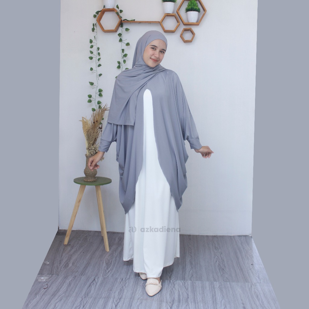 Azkadiena Alika Gamis Syar'i One Set 4in1 Set Jilbab Abaya Ciput Outer Dress lebaran Batwing Kaftan