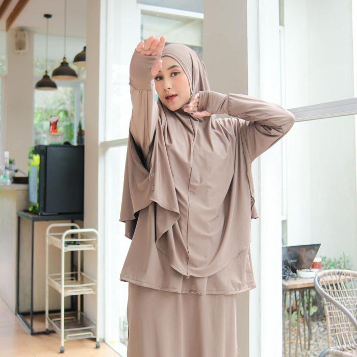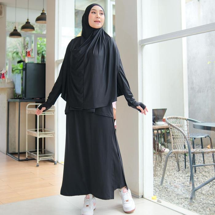 Setelan Baju Olahraga Wanita - Denay Sporty Muslimah, Atasan, Celana, Dan Outer Hijab - Dewasa, Panjang - Denim, Allsize