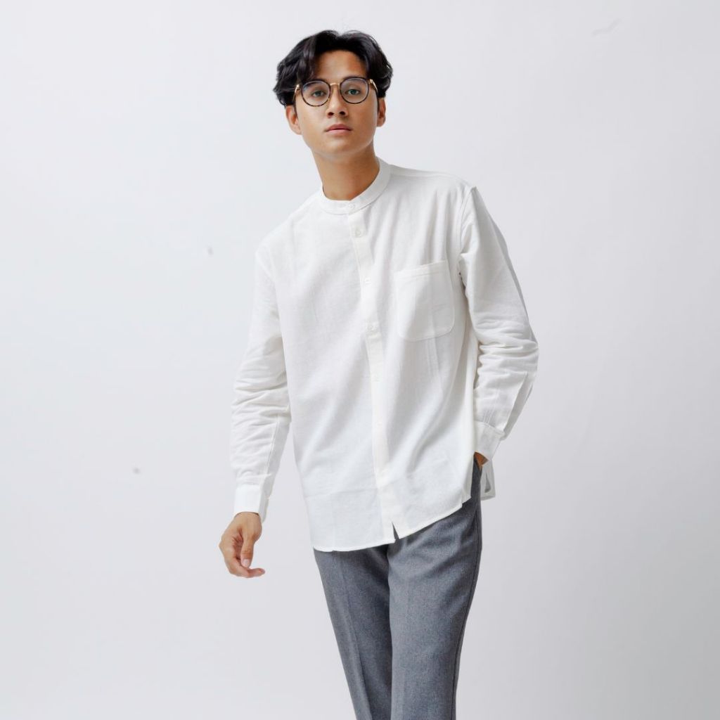 Divsouth Kemeja Koko Pria Kerah Shanghai Panjang Polos Linen Oxford Cozy