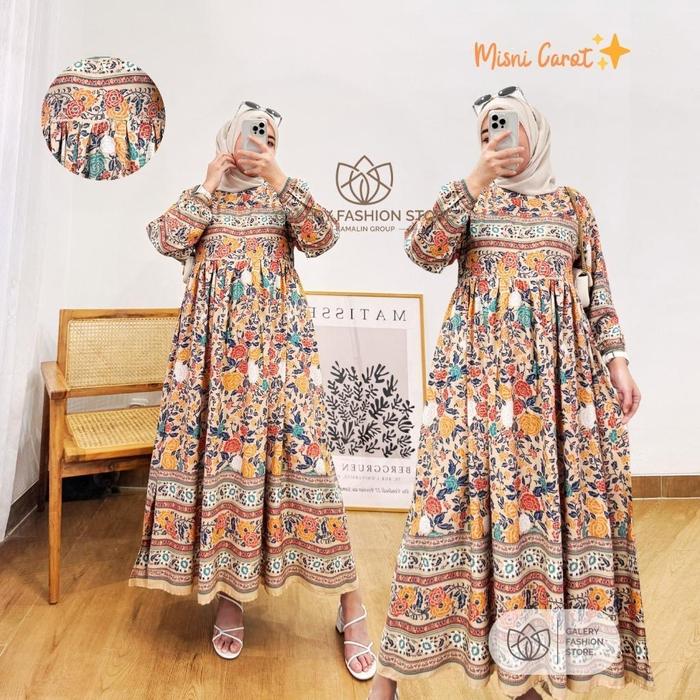 Kalmia Midi Dress Rayon Premium Gamis Jumbo Busui By Kamalin Zipper - Misni Black, L