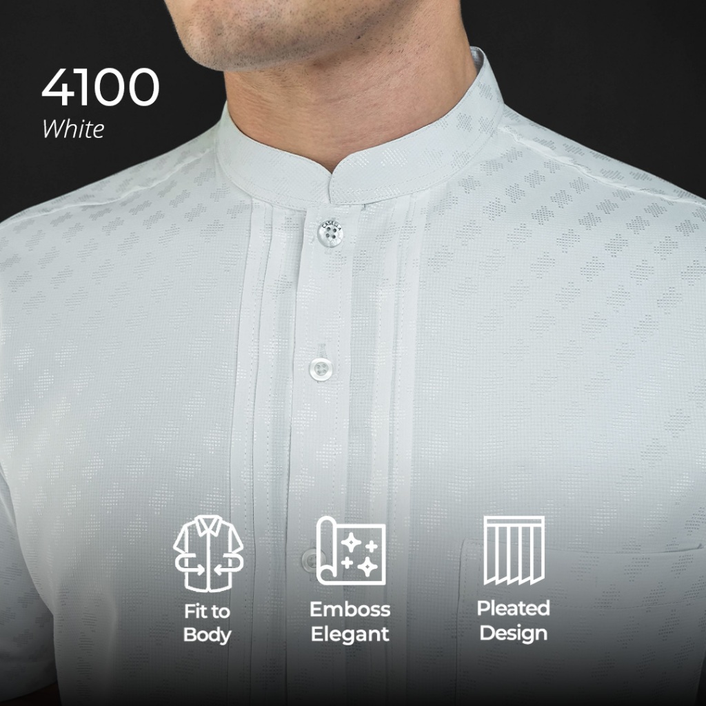 Casella Baju Koko Pria Lengan Pendek Pleats Ilyas | Baju Koko Putih Lengan Pendek