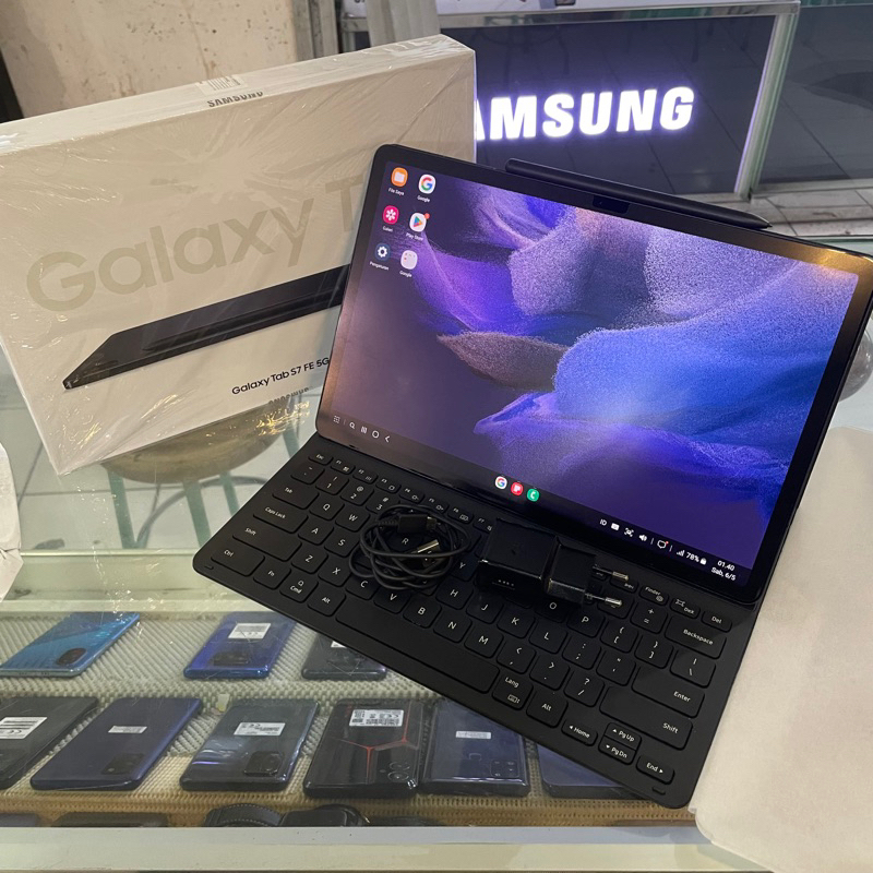 Samsung Tab S7 Fe 5G + Keyboard Original Second Bekas Pakai Mulus Fullset Original Resmi