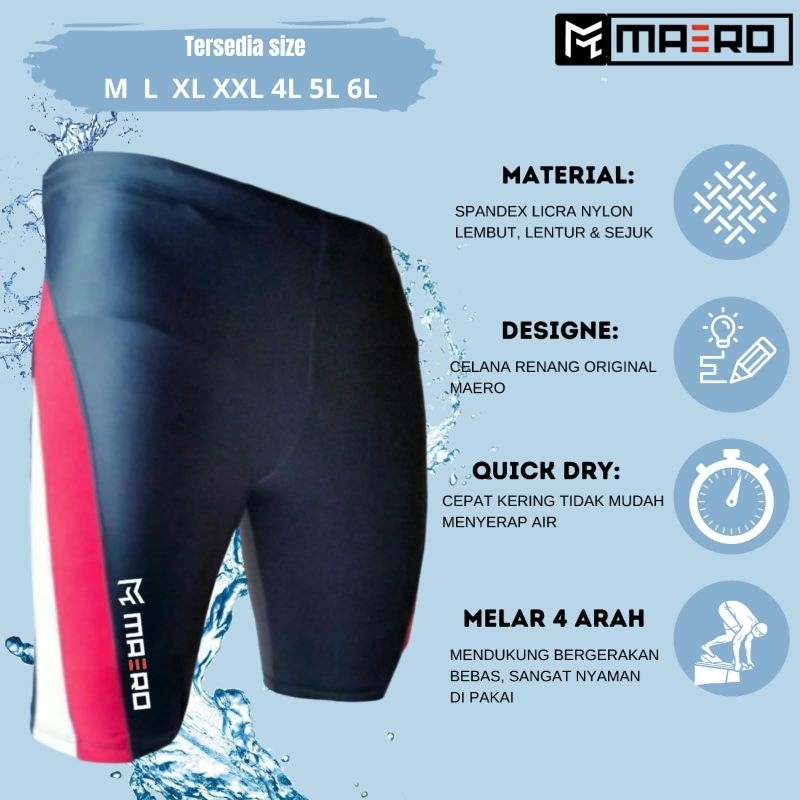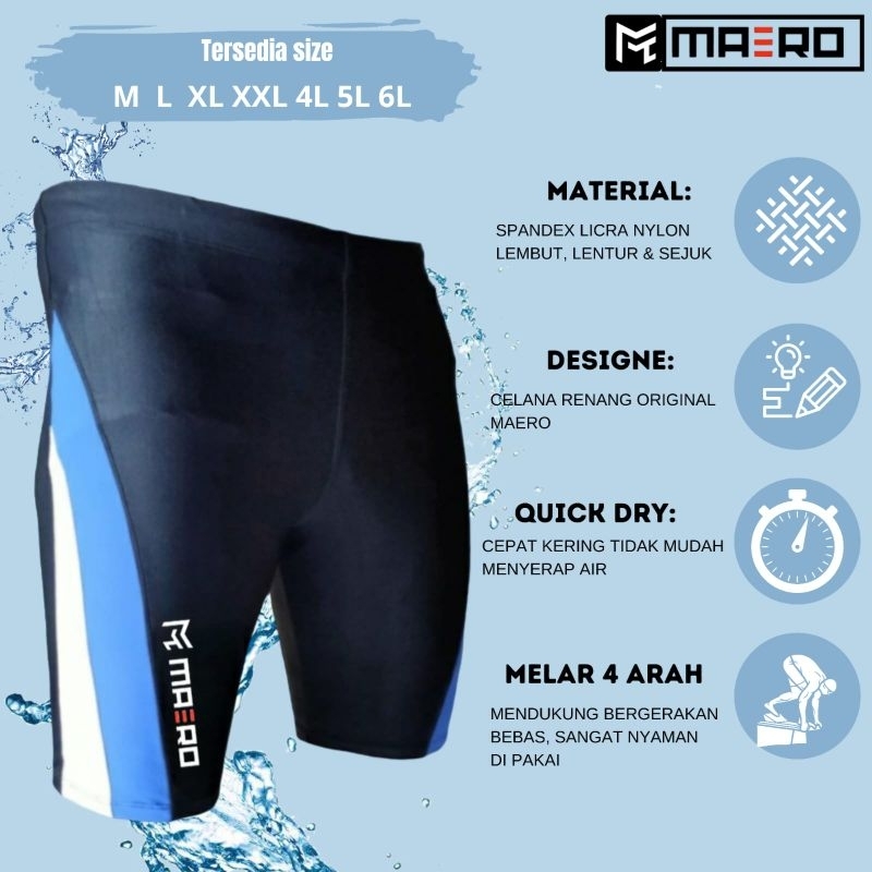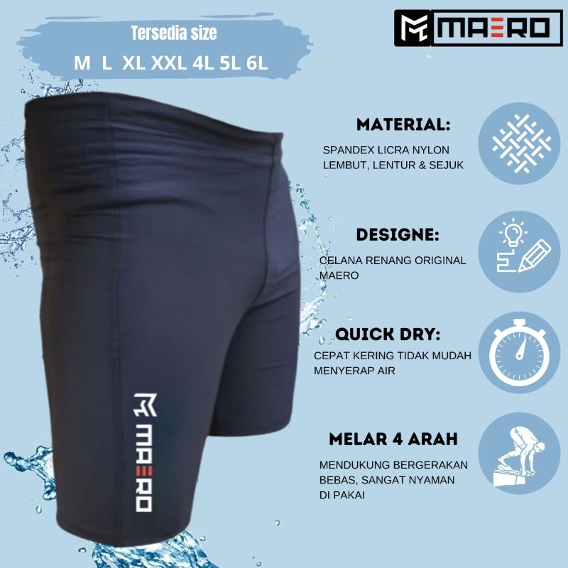 Maero Original Celana Renang Pria 45 Bb 40-125Kg Celana Renang Pria Ketat Tersedia Size Jumbo