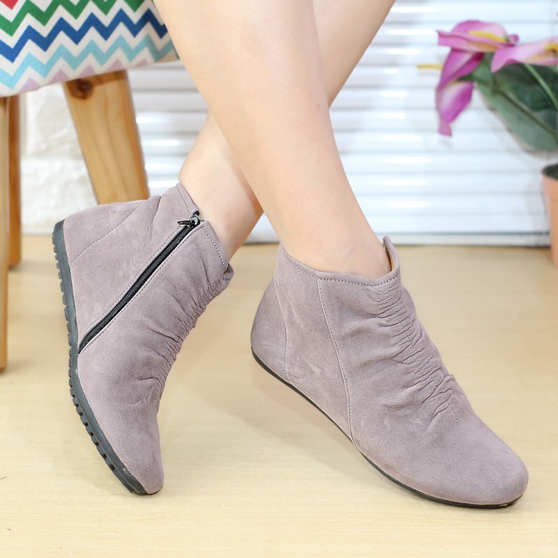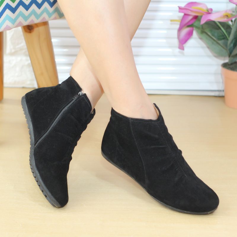 Sepatu Boots Wanita Flat Suede Resleting Karet