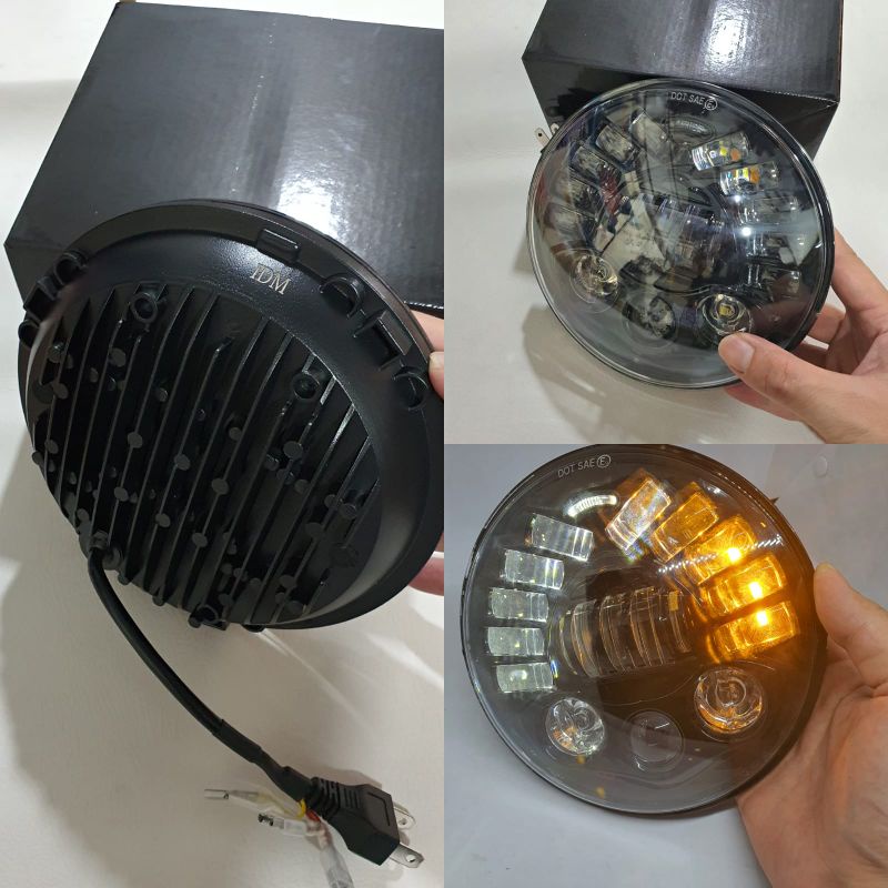 Lampu Depan Idm 7 Incih 19Led Dan 5.76 Incih 16Led Ori Import Ninja Megapro Tiger Dus Hitam Polos