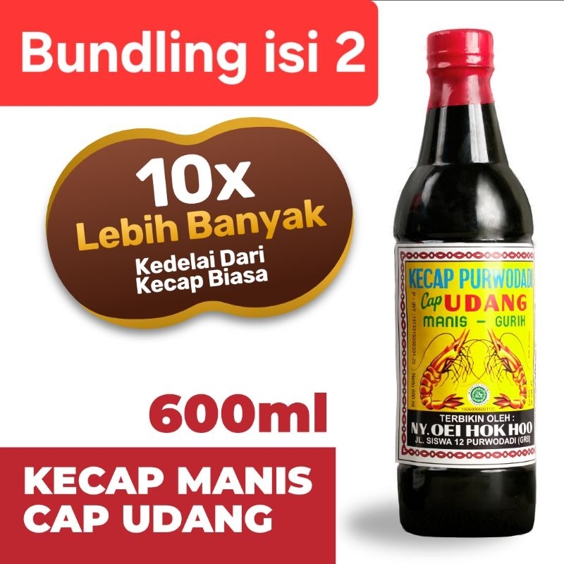 Bundling Isi 2 Kecap Purwodadi Cap Udang 600 Ml Kecap Manis Sehat Alami Kedelai Hitam