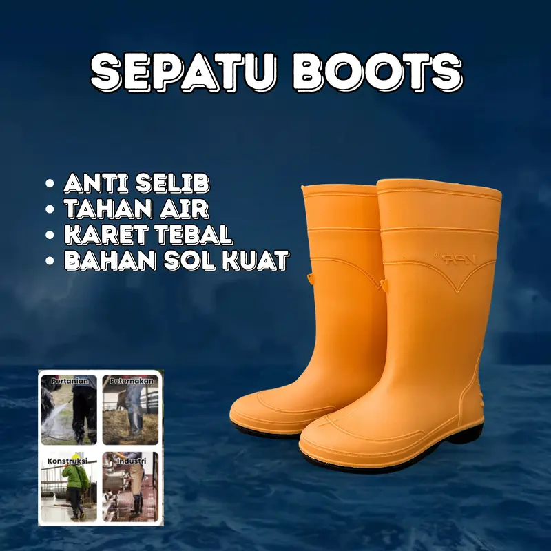 VPR Sepatu Boot Tinggi Premium Oren BootsKaret Lokal Lentur Anti Air & Slip Perkebunan AntiSlip Fungsional Kualitas Teba