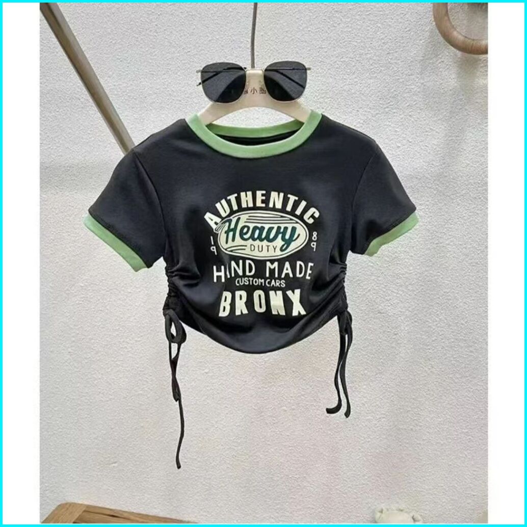 Korea Style Setelan Jeans Anak Perempuan Atasan Croptop Motif Lucu Celana Jeans Panjang Sobek Kulot Baju Impor Anak Pere