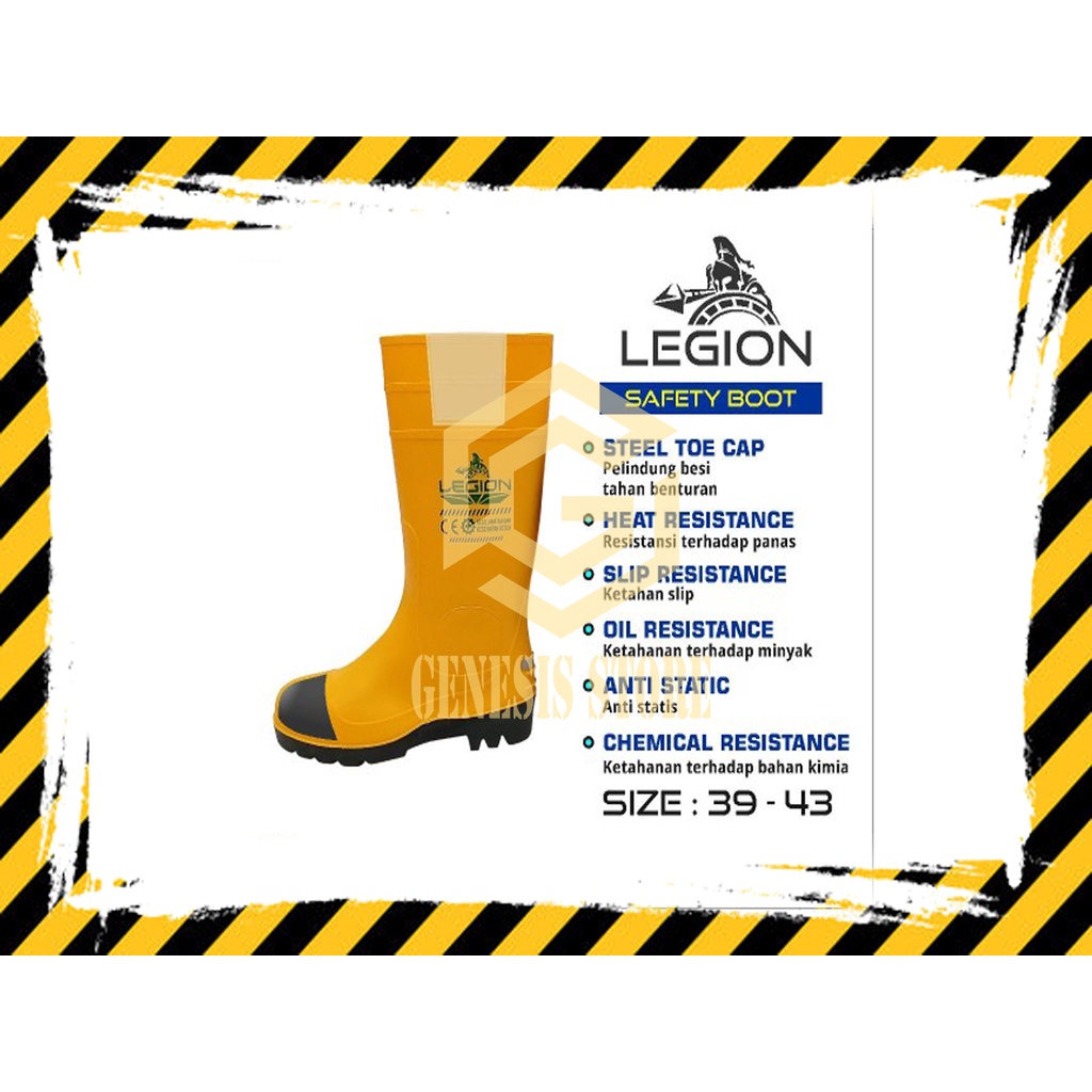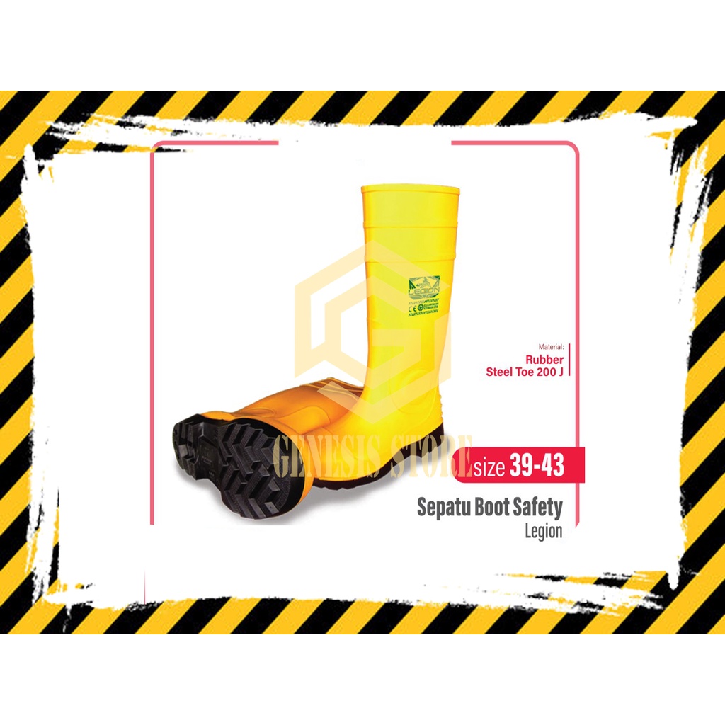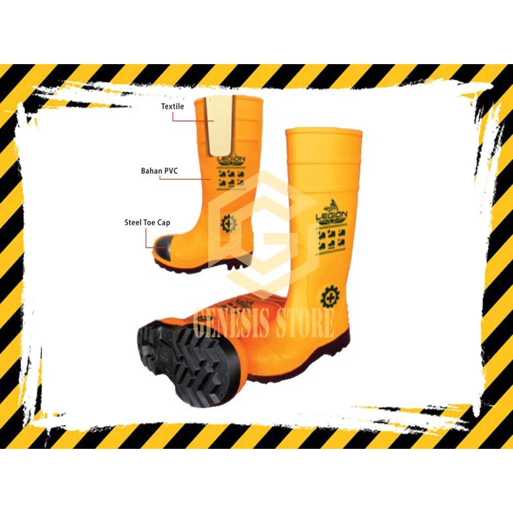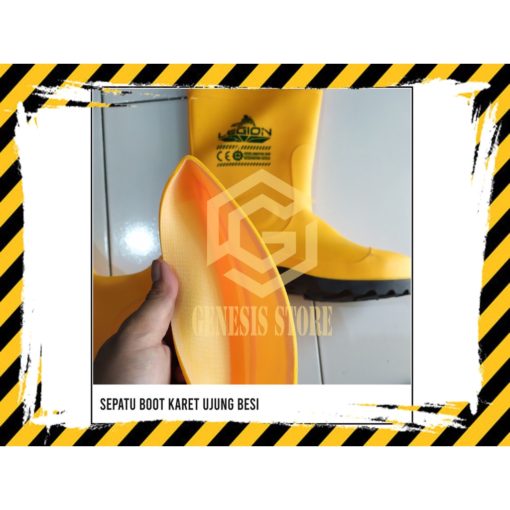 Sepatu Safety Boot Rubber Safety merk LEGION STEELION Karet Ujung BESI Pelindung Sepatu Proyek Warna Kuning