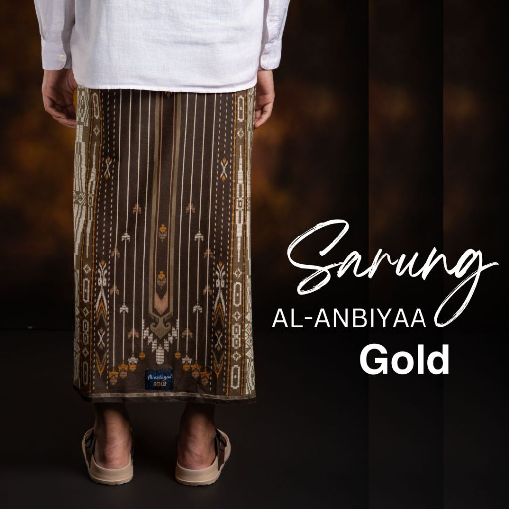Sarung Katun Pria Al Anbiyaa Seri Gold Dasar Warna Cream Bahan Halus
