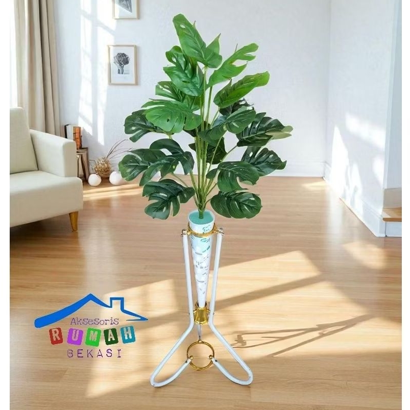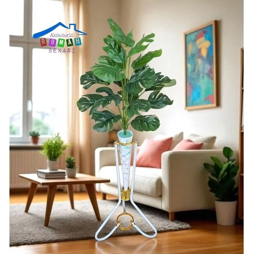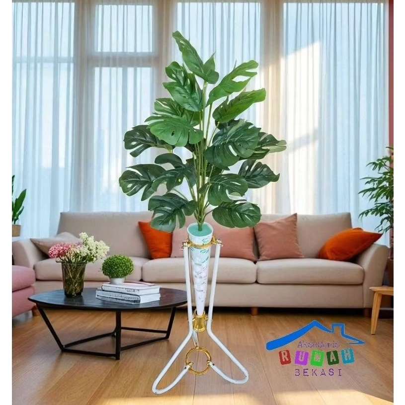 Pohon monstera artificial 18 daun / Daun monstera dengan pot standing besi