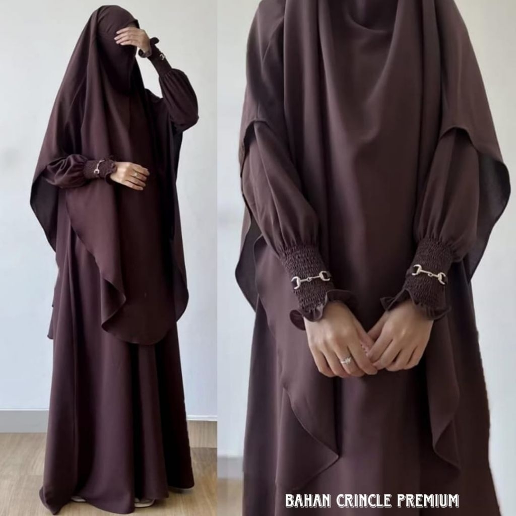 HAYUMNA Gamis Set Khimar French Mewah Syar'i Abaya Wanita Terbaru Lebaran