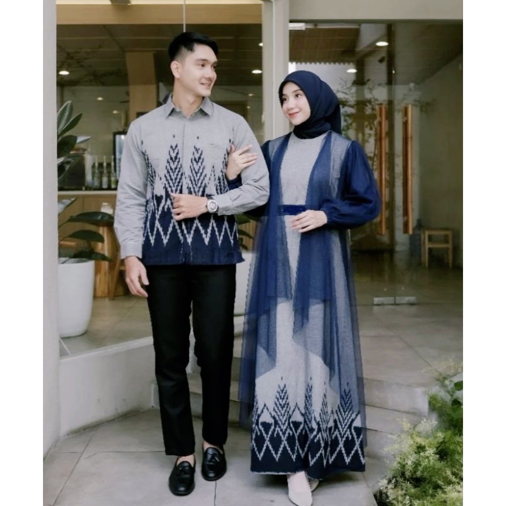 READY STOK Set Baju Couple Tenun Pasangan Dres Mariposa Outfit kondangan Gamis Lebaran Terbaru