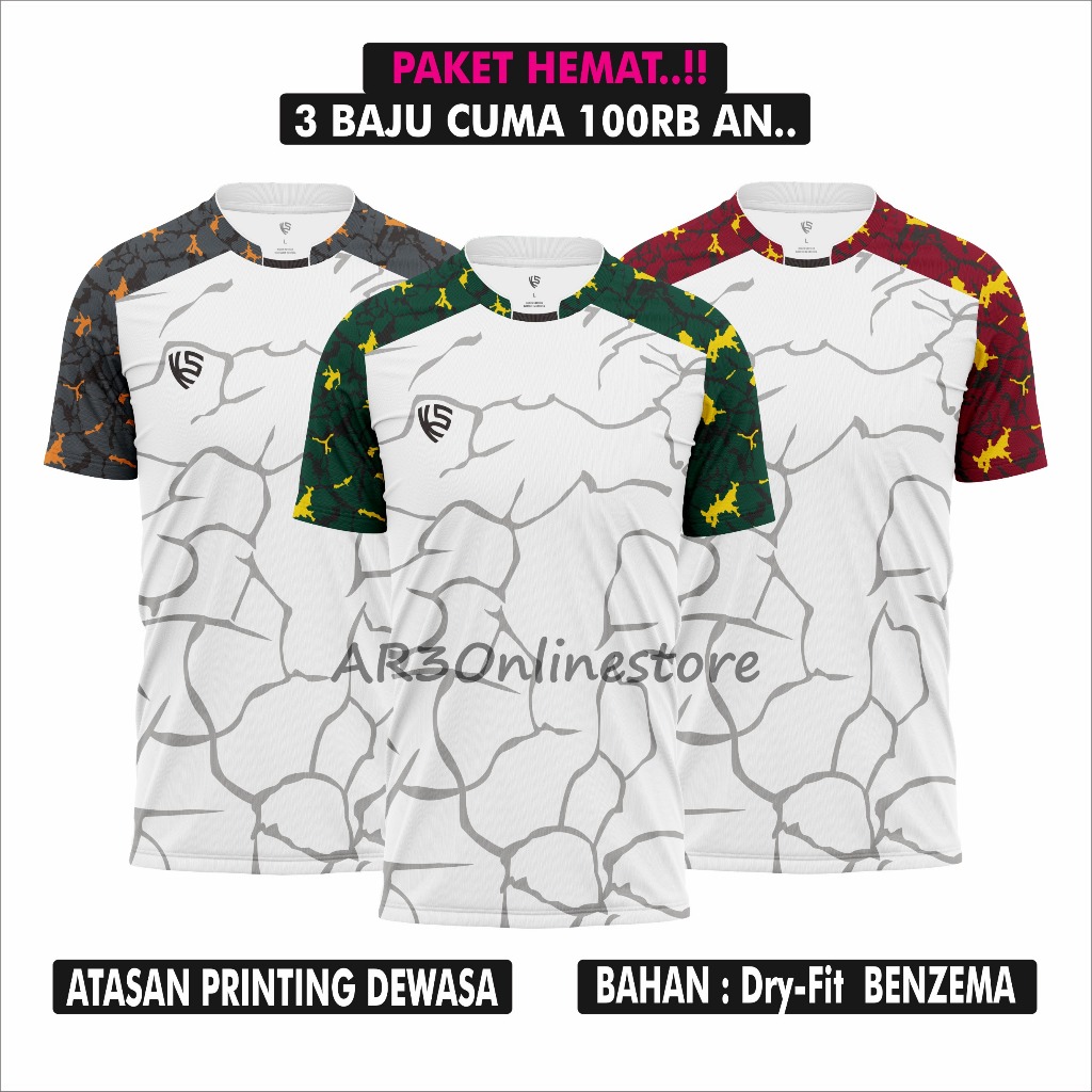 ( 3 BAJU HANYA 100 RIBUAN ) Baju olahraga pria/wanita bahan Printing cocok untuk badminton voli futsal sepak bola dan ru