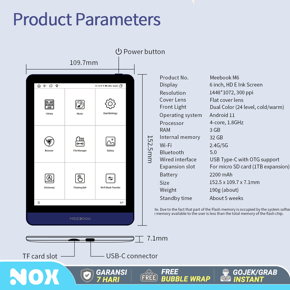 6"Inch Meebook M6 E-Ink Reader E-Book Android 11 Kindle Boox Likebook Kobo E-Reader Google Play
