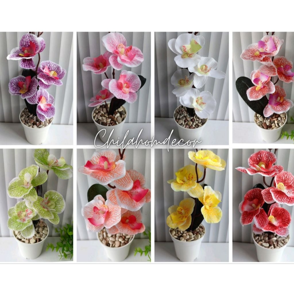 PAKET HIASAN 5 ANGGREK WARNA BUNGA RENDOM + POT DAN JUNTAI MODEL RENDOM
