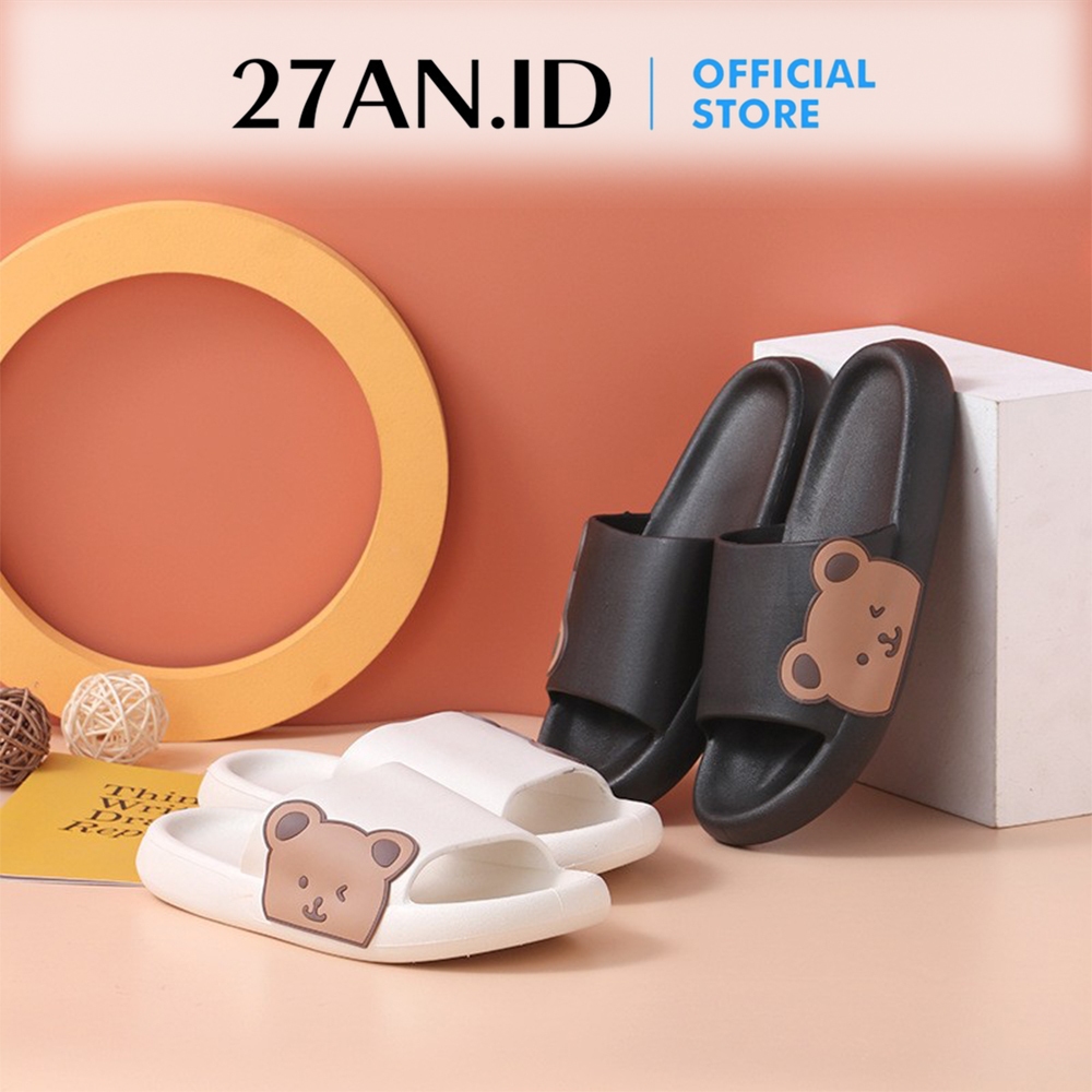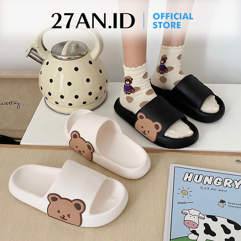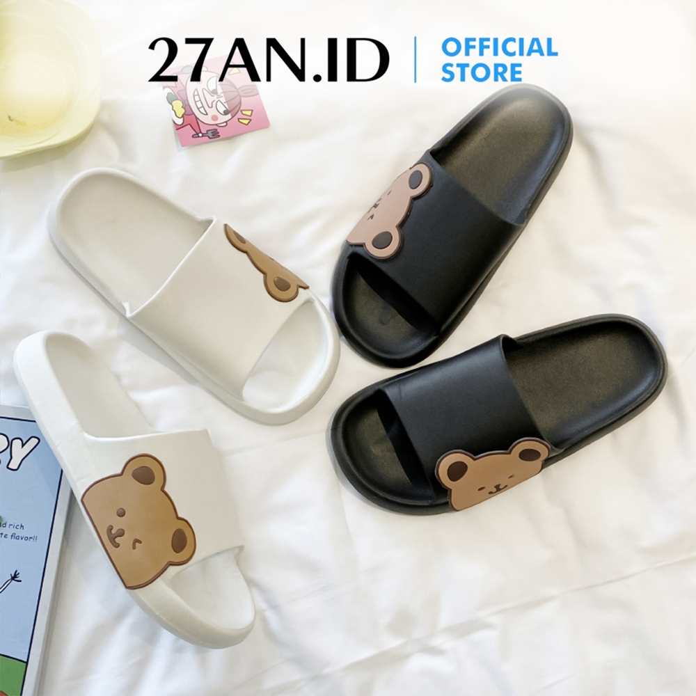 (27AN.ID) Sandal Slop SP10 Sandal slip on Motif Bear Brown tebal Empuk Lucu sandal wanita