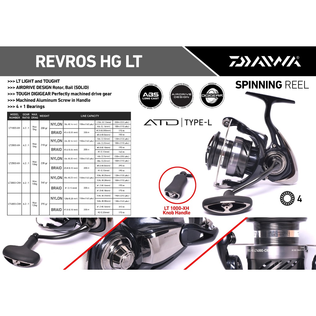 Reel Daiwa Revros Hg Lt 2025 | Air Drive Design | Atd | Digigear | Abs Long Cast | Power Handle | Sw | 20 Revros Lt Hg |