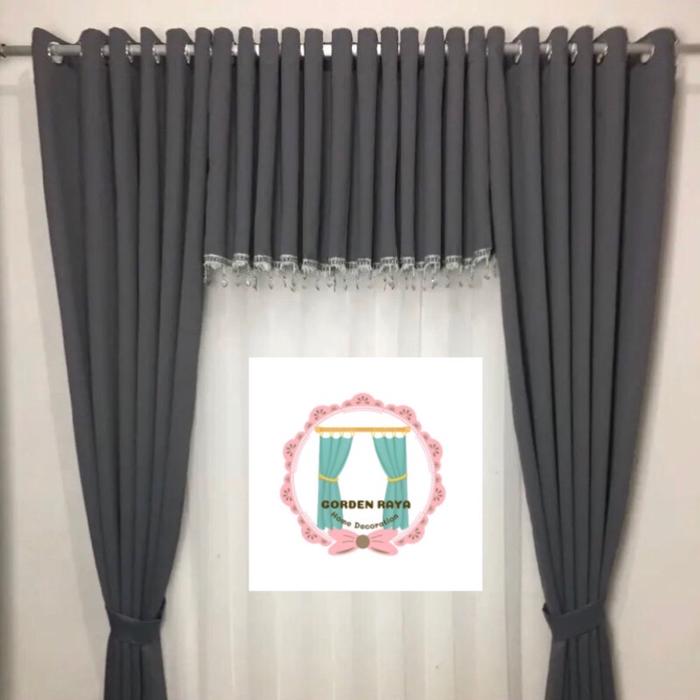 SATU SET GORDEN BLACKOUT DOFF DAN PONI RENDA KRISTAL - ABU TUA, T 150CM