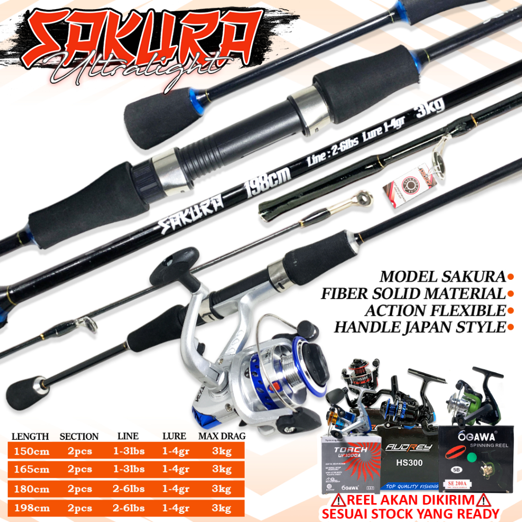 Joran Ultralight Ul Sakura 2-6Lb Fiber Solid Kuat Max 3Kg Up