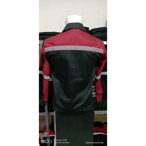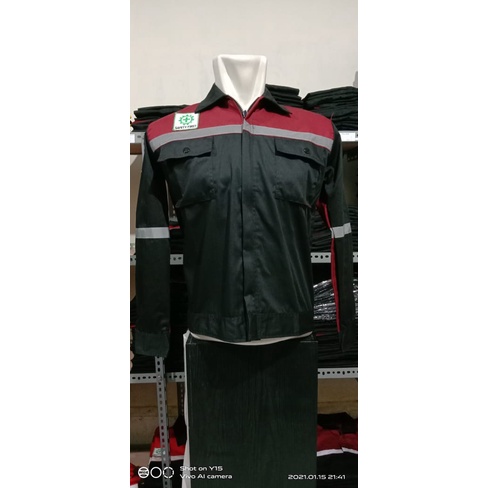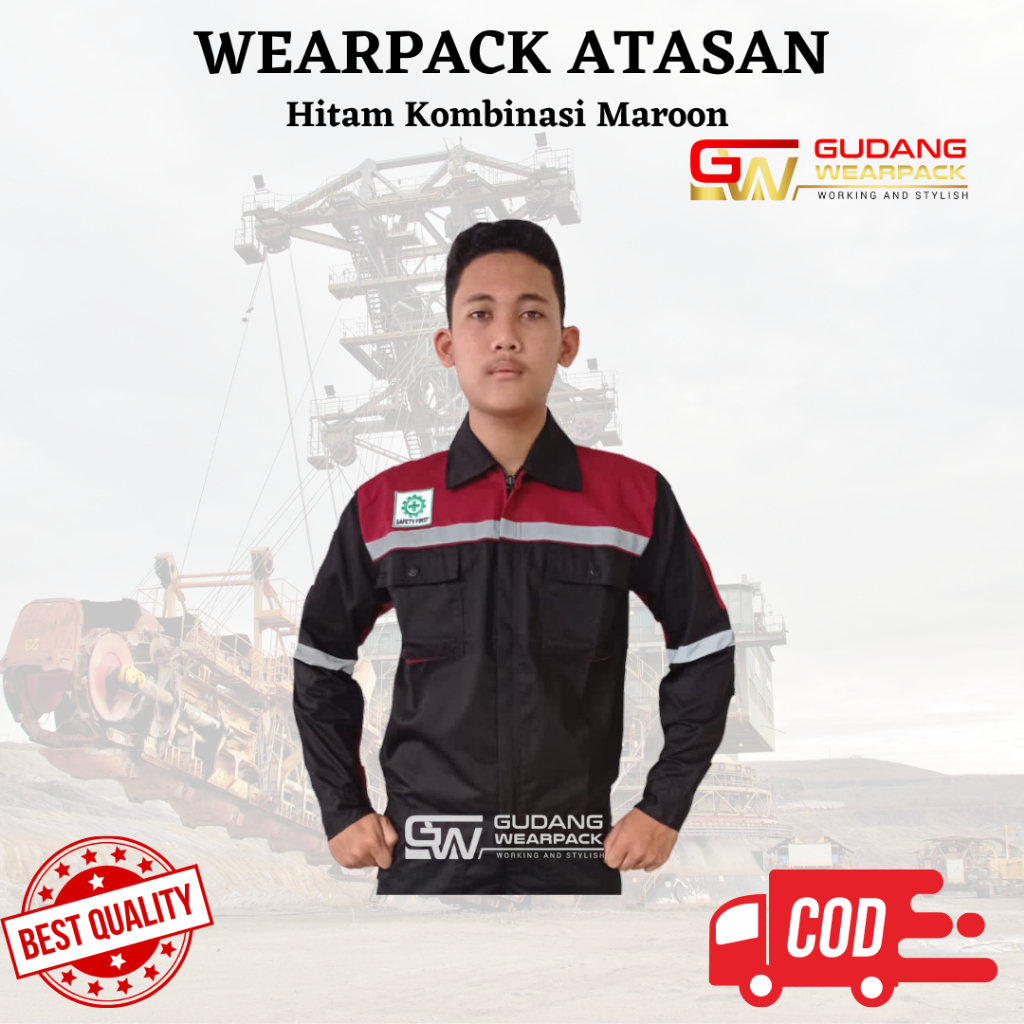 Seragam Kerja/Wearpack Atasan Lengan Panjang Warna Hitam Kombinasi Maroon