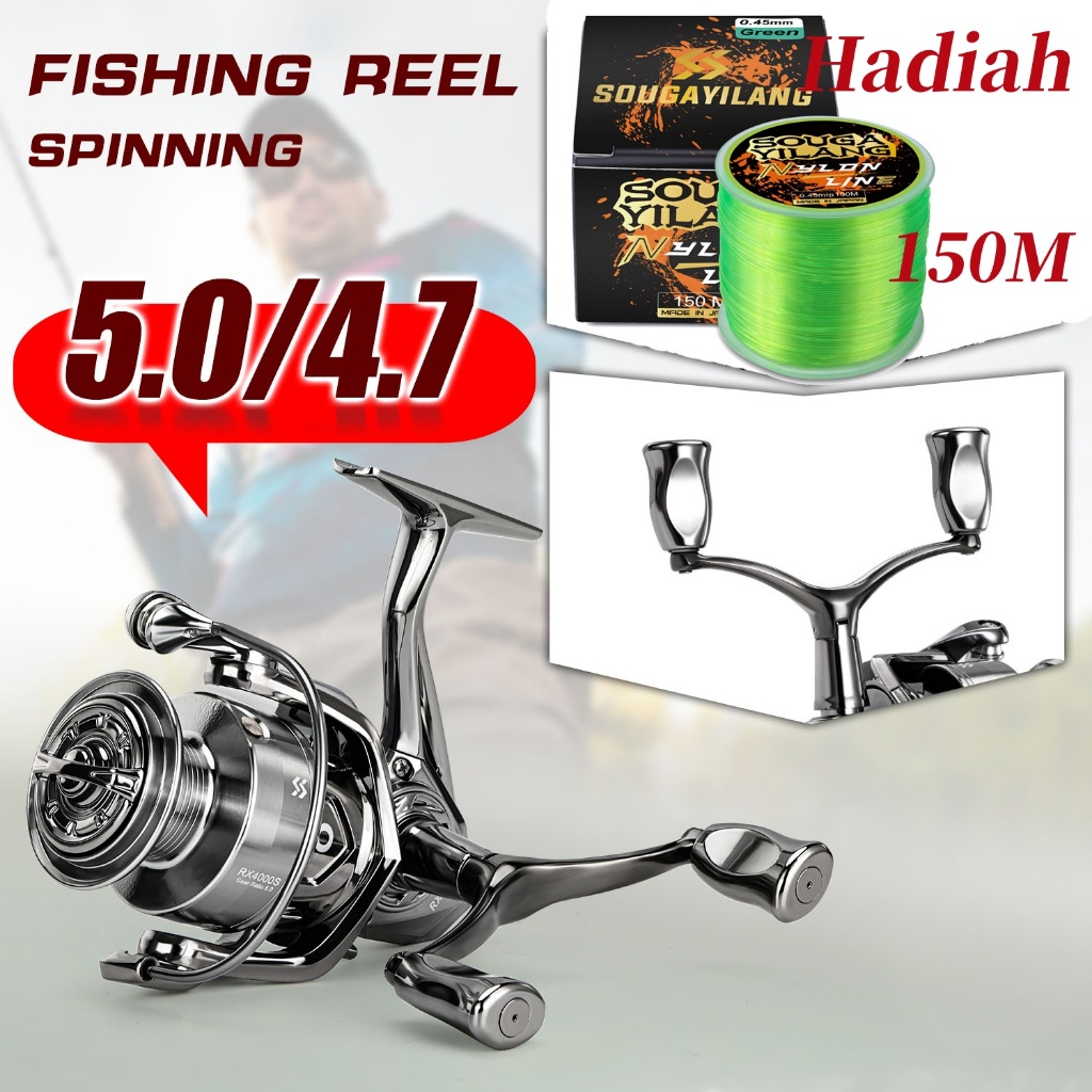 Sougayilang Rotating Fishing Scroll 1000-5000 Aluminium Line Shaft Reel Pancing Pegangan Ganda Rocker 5.0: 1 Rasio Gear