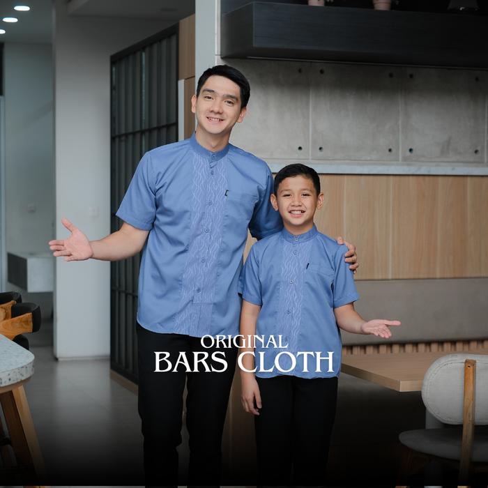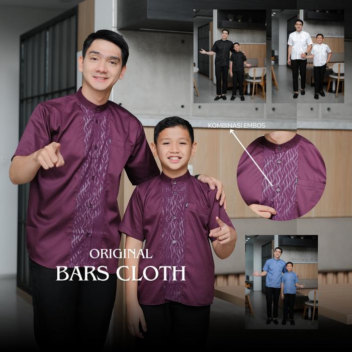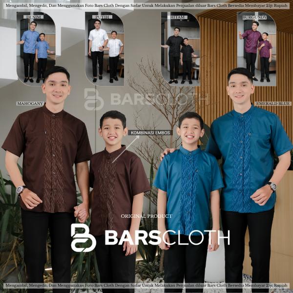Barscloth Baju Koko Couple Ayah Anak Laki Laki Lengan Pendek Pria Slimfit Mahogani Emerald Dan Burgundy Kemeja Muslim Sa