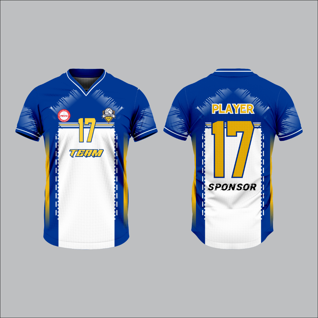 Jersey voli / volly pria wanita full printing biru putih kuning free nama nomor dan logo