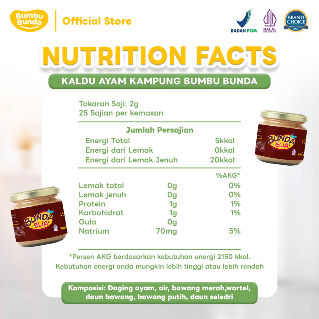 Bumbu Bunda Elia Kaldu Mpasi 50Gr Non Msg - Bumbu Mpasi | Kaldu Asli | Kaldu Ayam Sapi Salmon Jamur