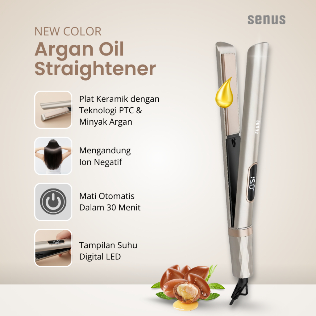 Senus Hair Straightener Catokan Pelurus Rambut Ceramic Plate Dengan Minyak Argan