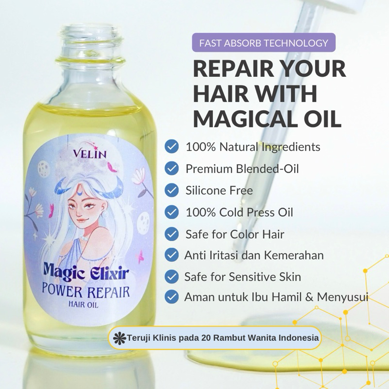 Magic Elixir Power Repair Hair Serum Argan Jojoba Oil Rontok Akut Ketombe Membandel Dermatitis Seboroik