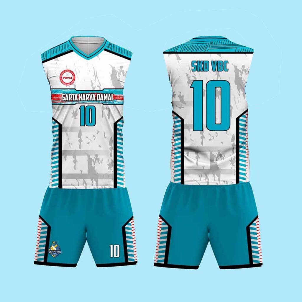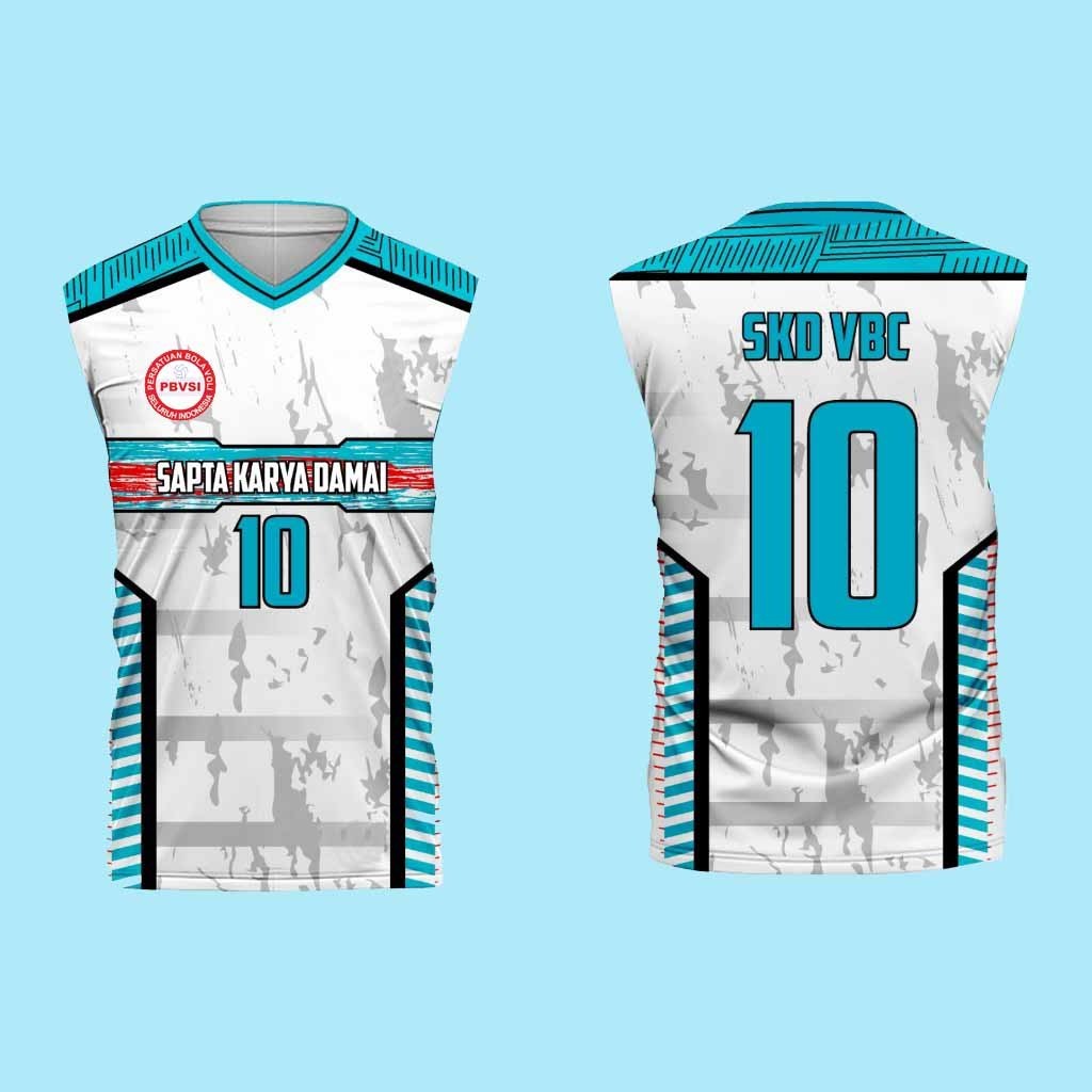Jersey Voli / Volly Pria Wanita Full Printing Biru Putih Free Nama Nomor Dan Logo