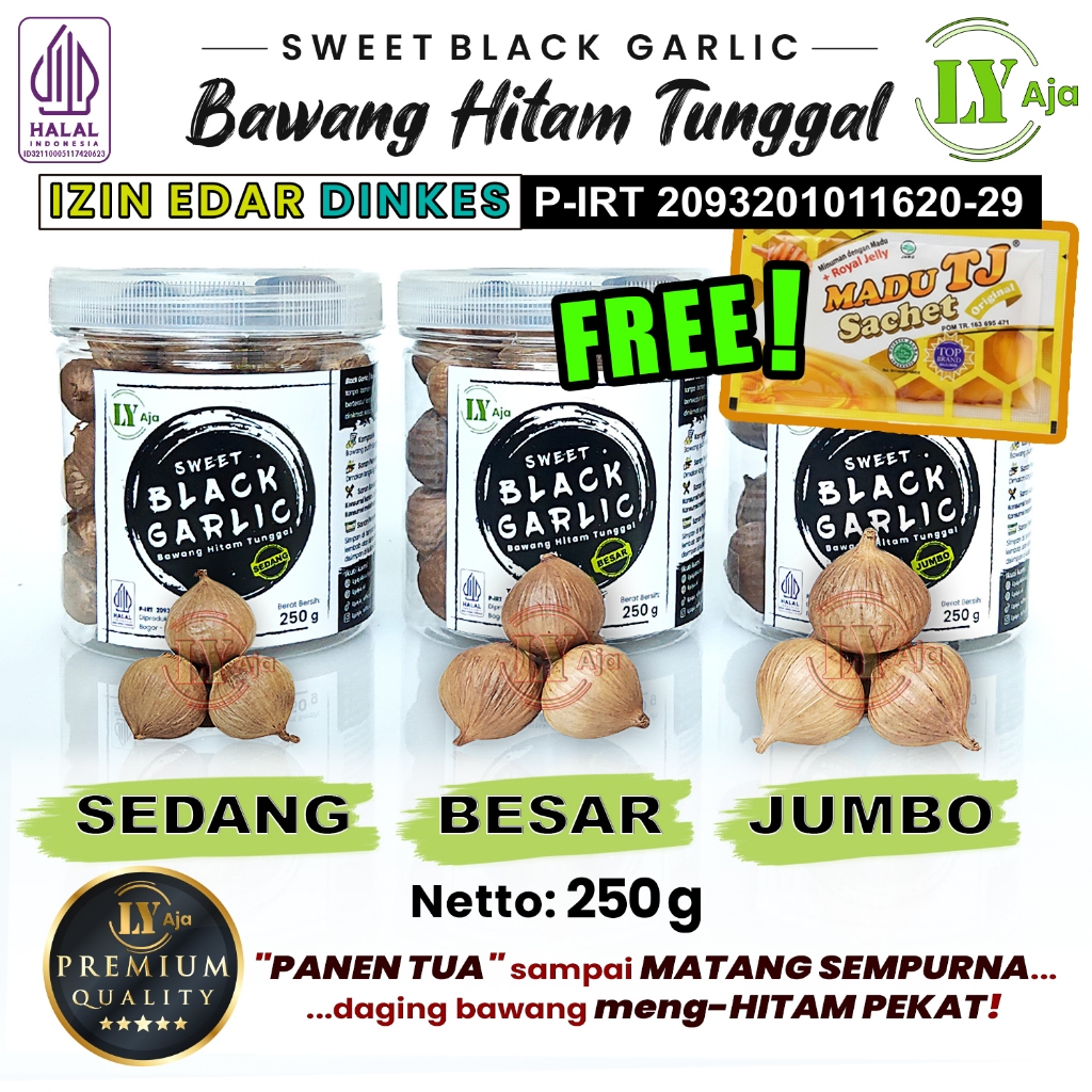 Bawang Hitam Tunggal Ly Aja Sweet Black Garlic 250G Premium Jumbo Besar Sedang Kecil