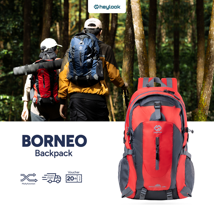 Heylook Official - Tas Ransel Gunung Borneo Backpack Carrier Hiking Camping Outdoor 40L Tas Travelling Tas Travel Tas Ba
