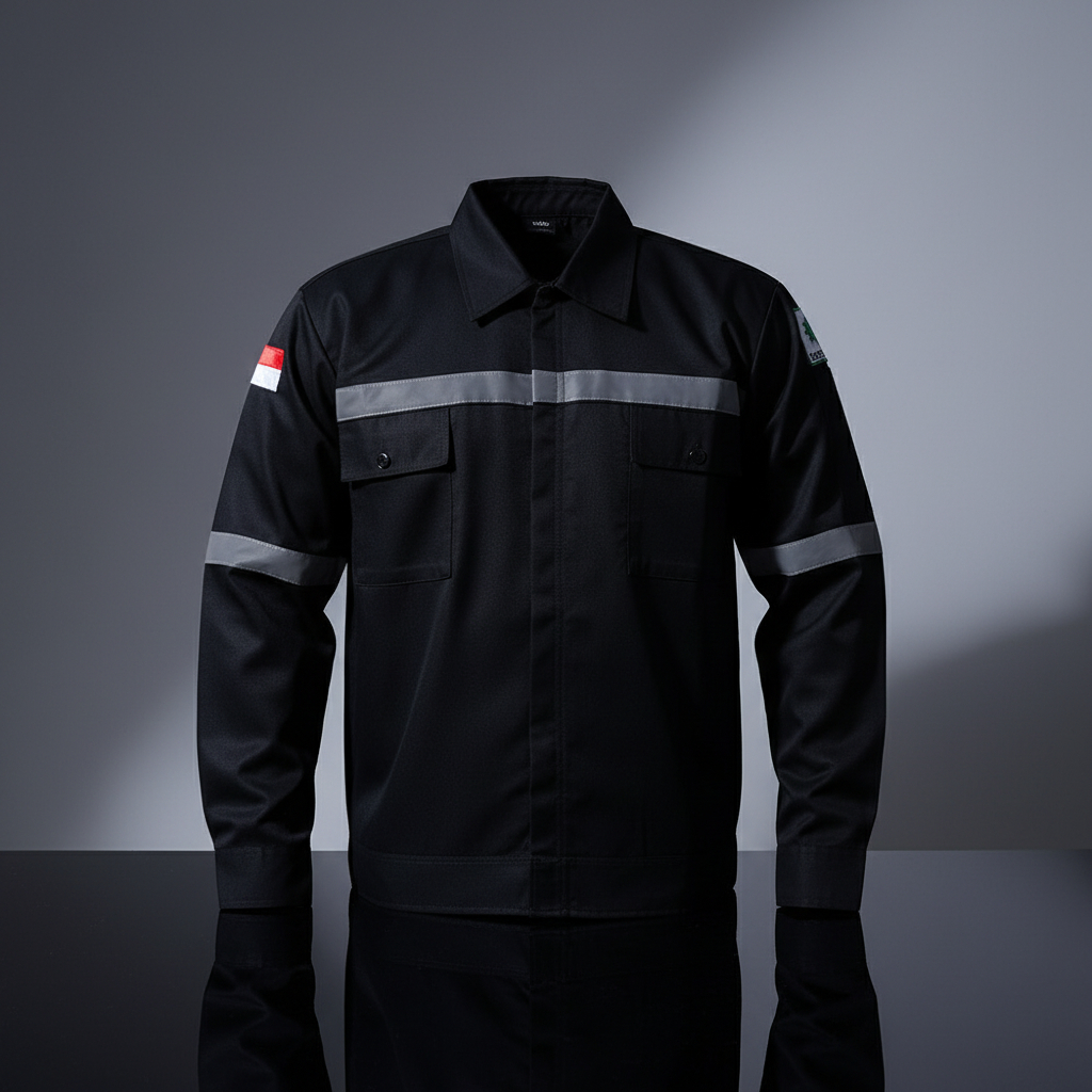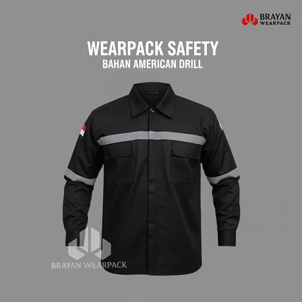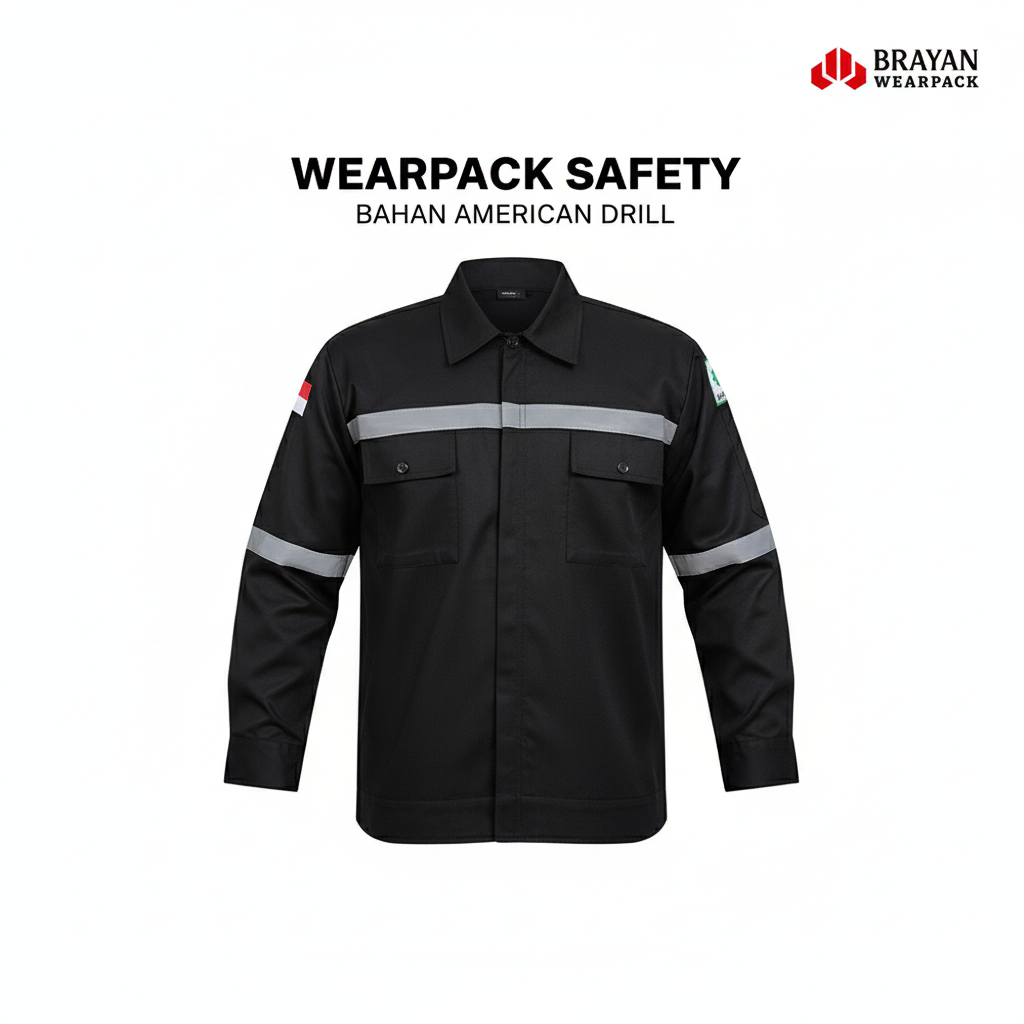 Wearpack Safety Lengan Panjang Seragam Kerja Proyek K3 Bahan American Drill Hitam Polos