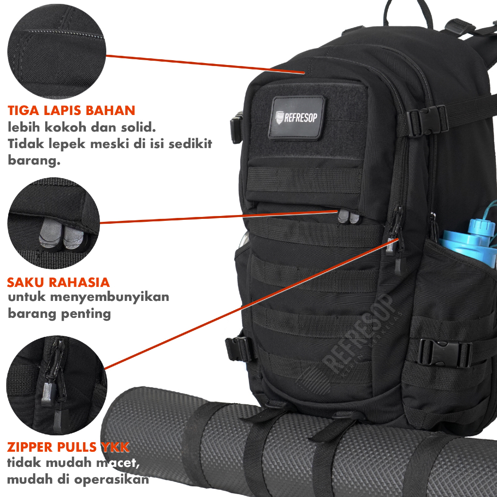 Refresop Original Px680 Tas Army Pria Backpack Ransel Tactical - Hitam