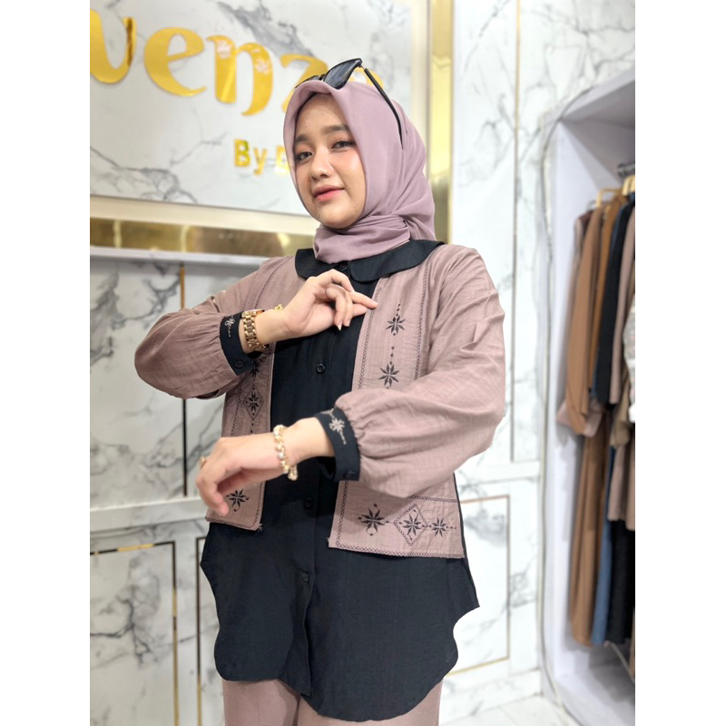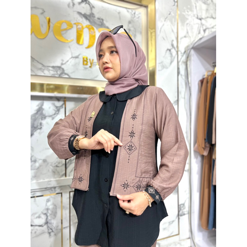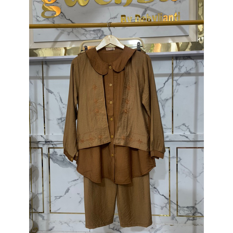 Gwenza - Biandra Setelan Celana Linen Motif Bordir - Muslim Wanita