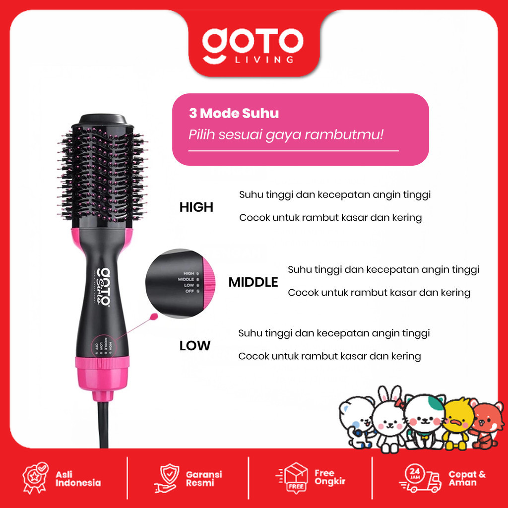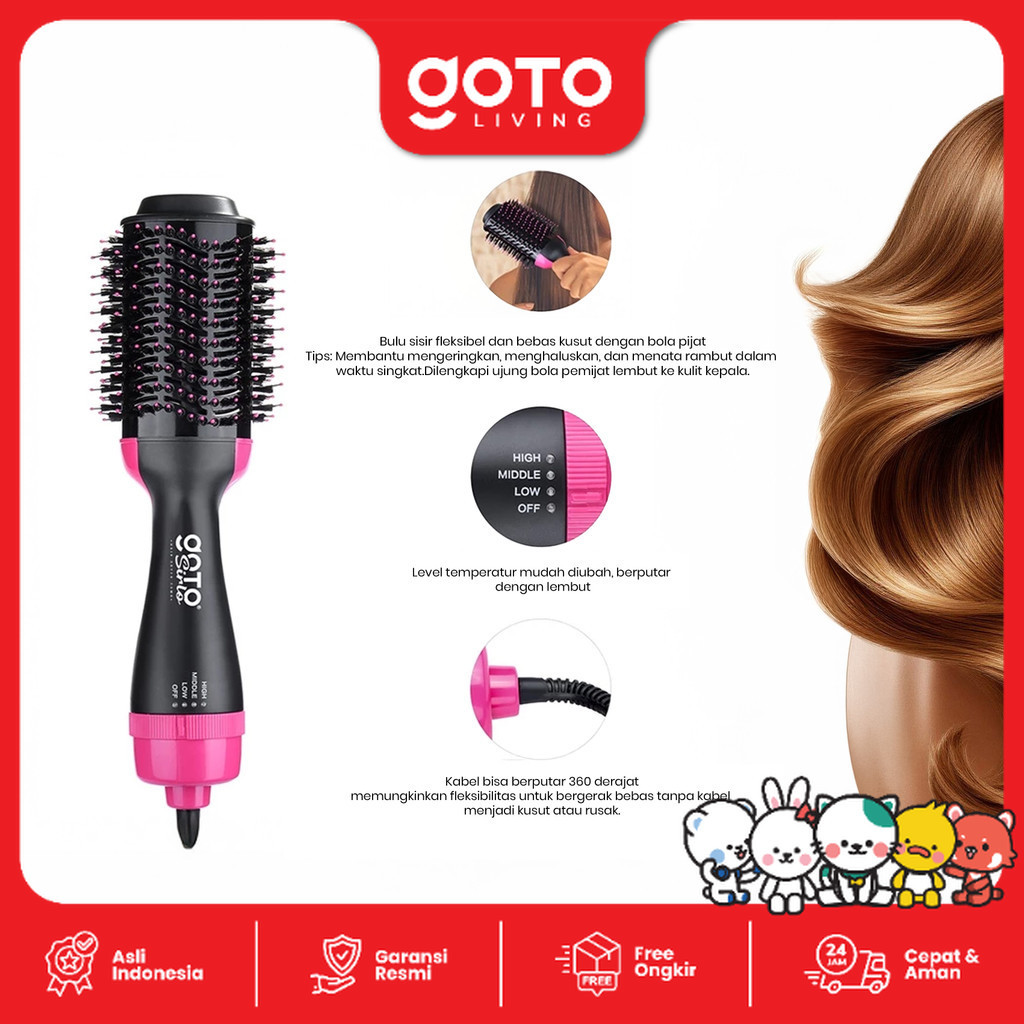Goto Sirlo Sisir Blow Pelurus Curly Pengering Rambut Elektrik 3In1