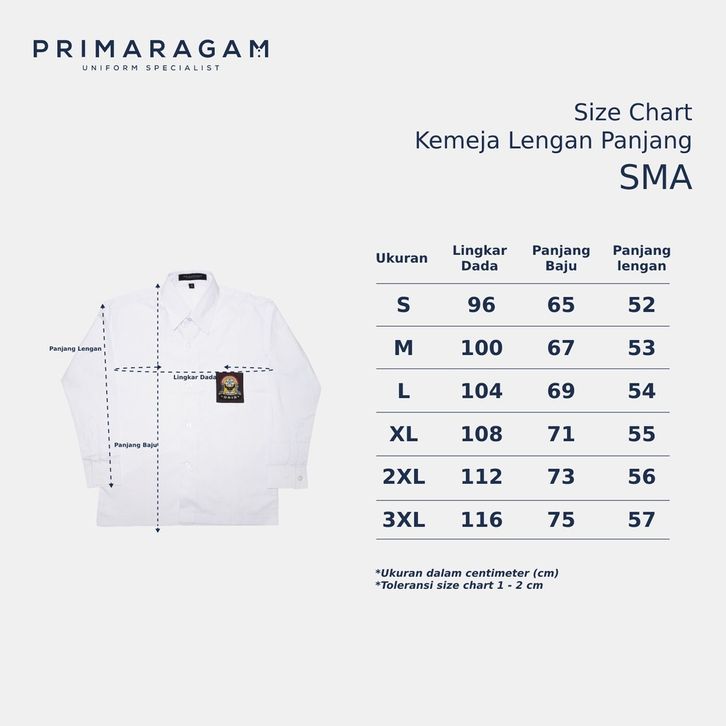PRIMARAGAM SERAGAM SEKOLAH SMA PEREMPUAN LENGAN PANJANG BAJU KEMEJA PUTIH OSIS SMK CEWEK LAKI LAKI