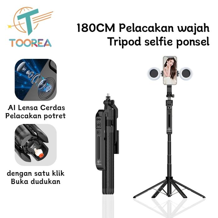 TOOREA C12 Pelacakan Wajah Otomatis Tripod Selfie Stick 1.8m Gimbal Handphone Stabilizer 360 Stand