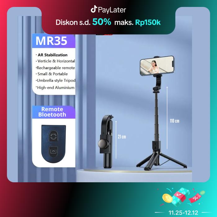 MINIBEST MR35 Tongsis Tripod Gimbal Stabilizer Bluetooth Selfie Stick Remote Tripod 360 HP Gold