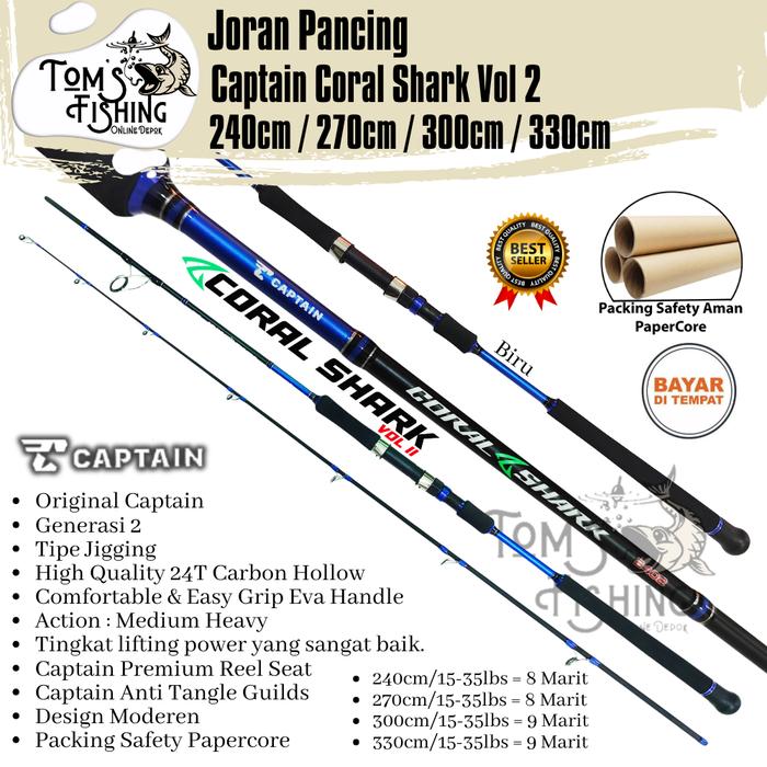 Joran Pancing CAPTAIN CORAL SHARK Gen 2 240cm - 330cm (Carbon) Jigging Murah - Toms Fishing