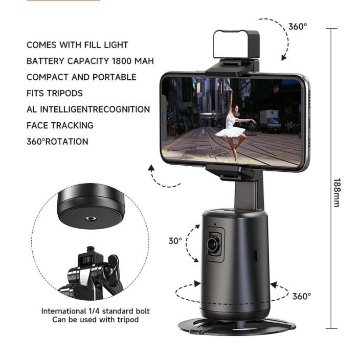 SMARTCOM Ai A200 Auto Face Tracking Gimbal Handphone Stabilizer 360 Tripod Holder Lampu