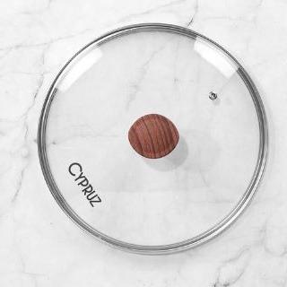 [c06][Beli Lokal] Cypruz Tutup Panci Stainless Kaca Gagang Kayu Bakelite Bisa Dilepas - 16 CM