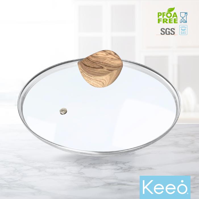 Keeo 28 cm Tutup Kaca Tahan Panas Dengan Lubang Uap Panas Panci Wajan Penggorengan Glass Lid - 28 cm