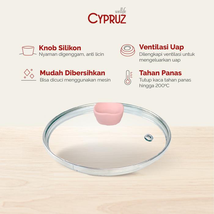 [c06][Beli Lokal] Cypruz Tutup Panci Stainless Kaca Gagang Kayu Bakelite 14 cm