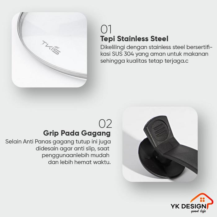 TKIS BY YK DESIGN TK-32cm-GZ Tutup Panci Kaca / Tutup Wajan Kaca Bahan Tebal Ukuran 32 Cm