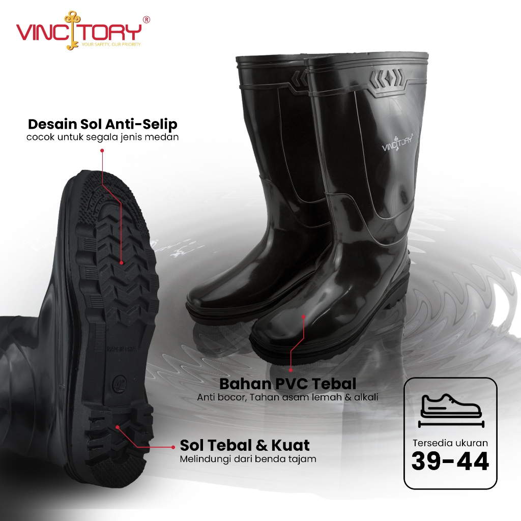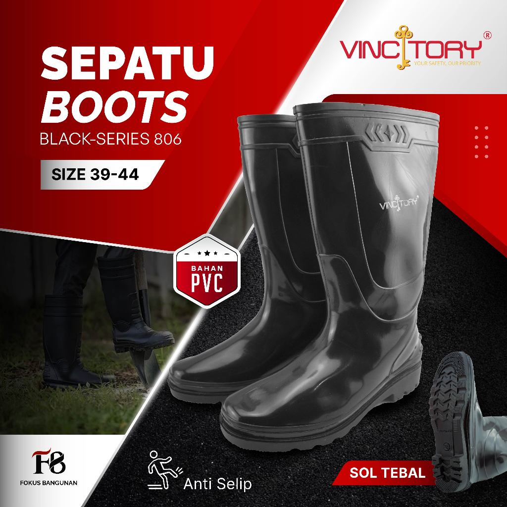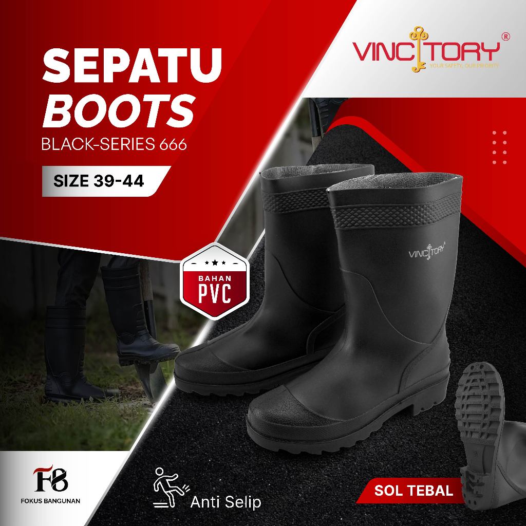 Sepatu Boots Hitam Wanita Pria Safety Proyek PVC Multifungsi | 2836 | 2841