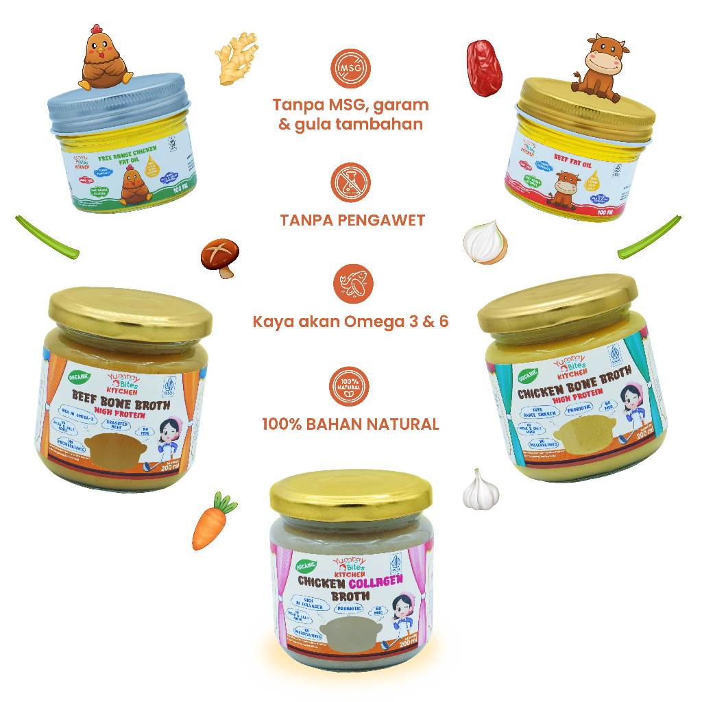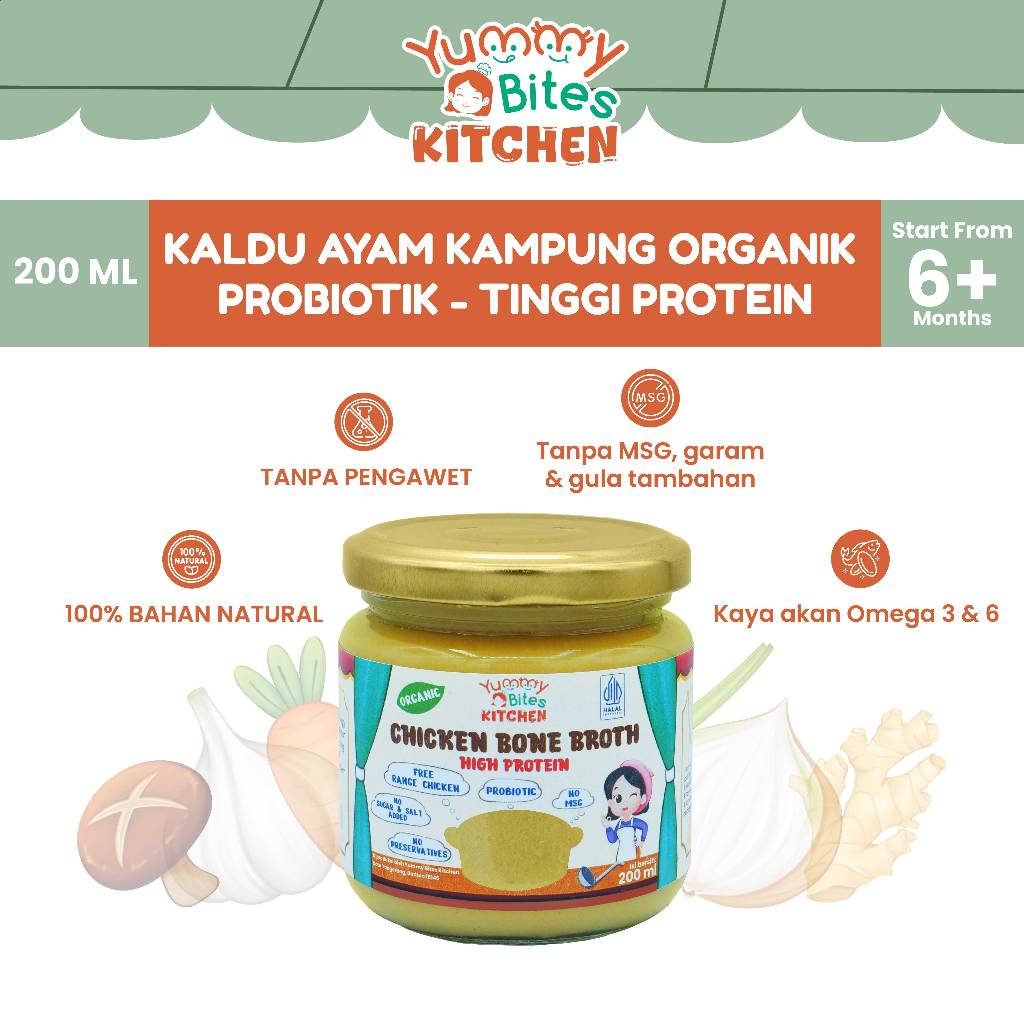Yummy Bites Kitchen - Kaldu Ayam Kampung Organik Probiotik 200 Ml High Protein | Organic Probiotik Free Range Chicken Bo